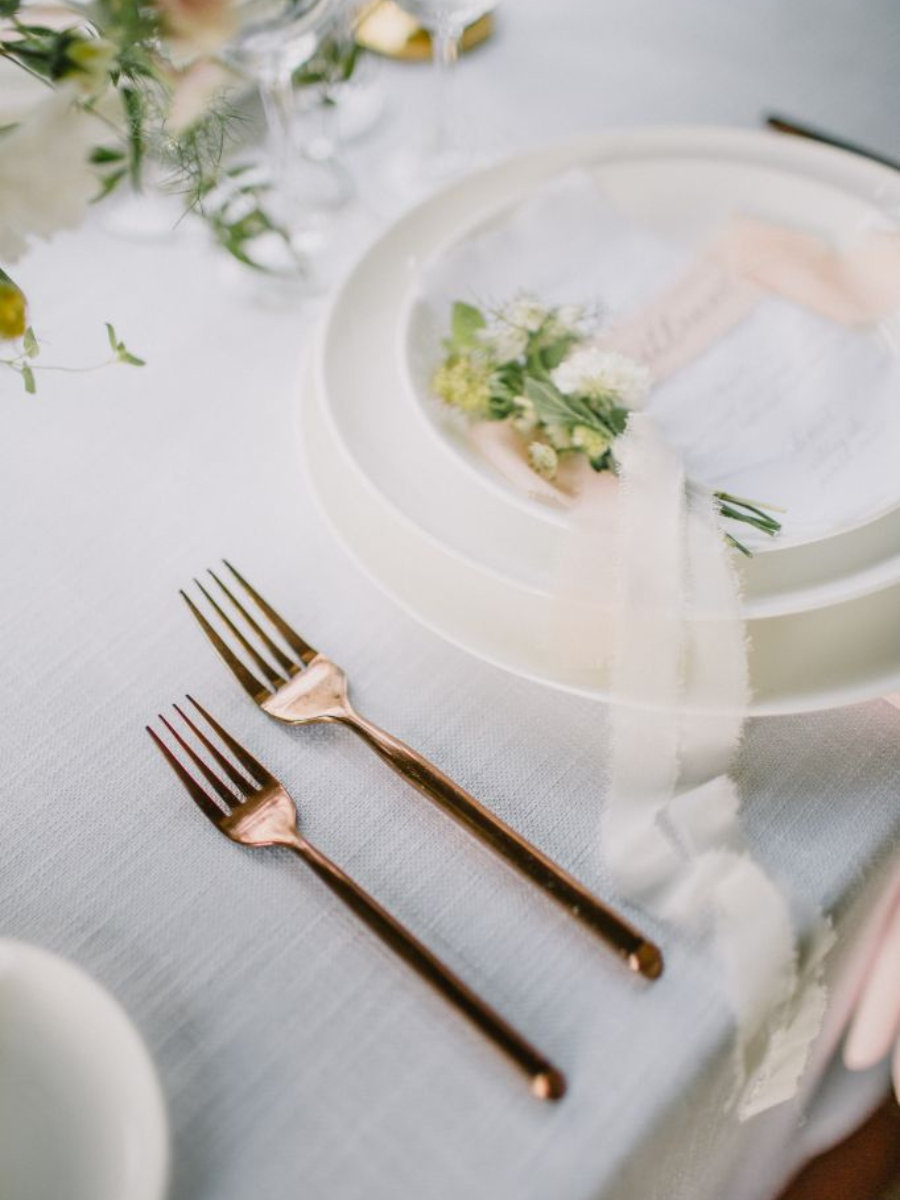 - Copper and gold finishes like our Brushed Copper and Brushed Gold Velo flatware