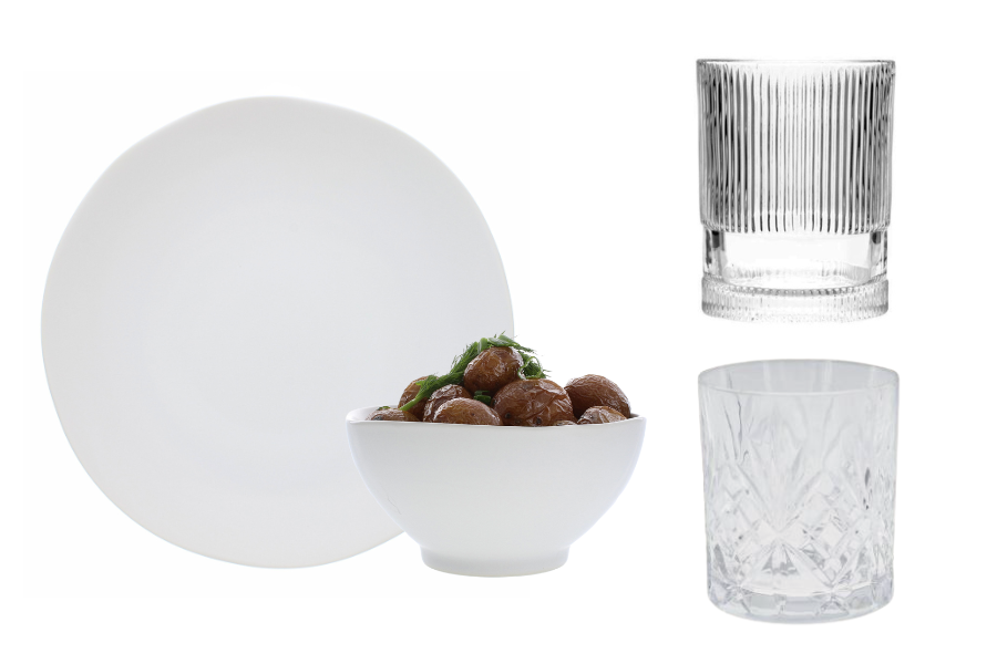 - Hand-made stoneware and textured glassware like our Cut Crystal and Lily Old Fashioned Glasses