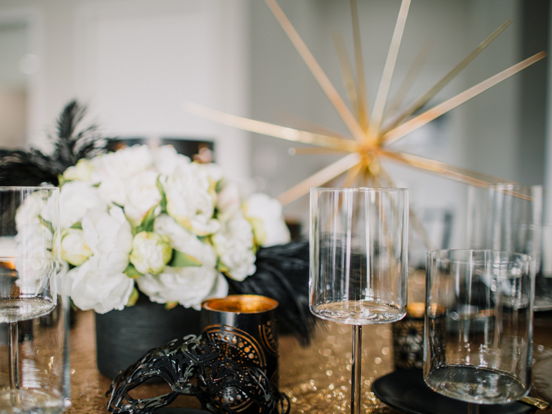 Pop the champagne and welcome the New Year with this spectacular masquerade themed party! Think gold sequins, black plates, masks, and feathers.