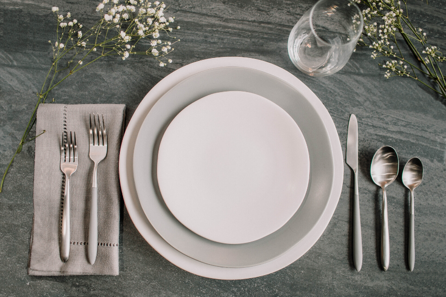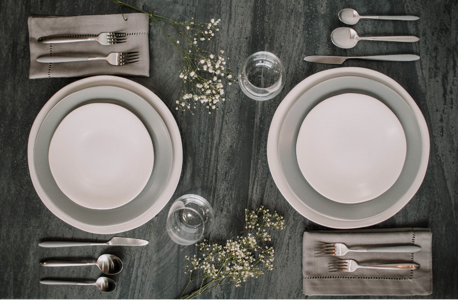 Determining a design for your table that is fresh and unique is not always easy. To help inspire you, we've curated two different mix and match place settings featuring our Stoneware and Velo Flatware!